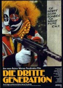 第三代的剧情简介· · · · · ·影片讲一个自称恐怖分子的团伙,是由社会中上层人士组成的,他们的反社会行为替政府的镇压提供了依据。在这部影片中,暴力不仅作为一种反抗社会的武器是无效力的,而且它实质上已为社会所同化。正像影片中一位警官所说:“我最近做了个梦……梦见资本家捏造出恐怖主义是为了迫使政府更好地保护他们。”影片的内容十分荒诞、角色的性格带有神经质而且颓废。