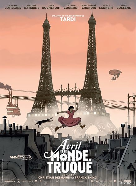 导演: 克里斯汀·丹米尔斯 / 弗兰克·叶根吉 编剧: 弗兰克·叶根吉 / 本杰明·罗格朗 / 雅克·塔尔迪 主演: 玛丽昂·歌迪亚 / 菲烈·卡特林 / 让·雷谢夫 / 奥利维埃·古尔梅 / 马克-安德烈·格隆丁 / 更多... 类型: 喜剧 / 动画 / 冒险 豆瓣评分:7.8 制片国家/地区: 法国 / 比利时 / 加拿大 语言: 法语 上映日期: 2015-11-04(法国) 片长: 105分钟 又名: 蒸汽女孩与不死猫(港) / 艾薇尔与虚构世界 / 四月和奇妙世界 / 虚假世界 / April and the Extraordinary World IMDb链接: tt3422078