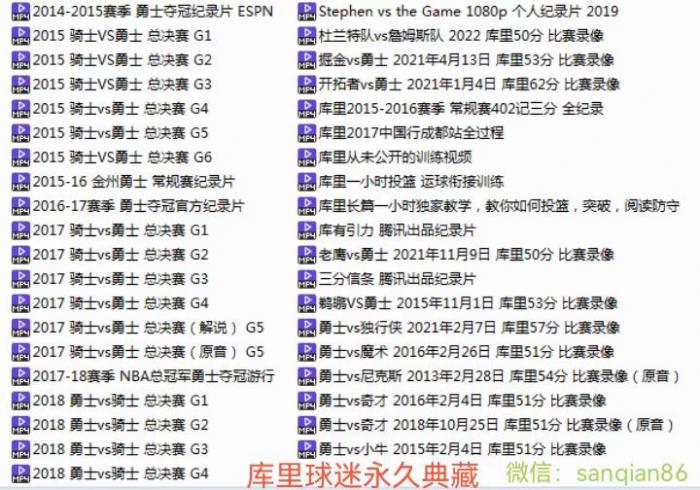 库里球迷永久典藏NBA球员斯蒂芬·库里三次夺冠决赛录像、50+比赛、相关纪录片、训练视频合集。 |
